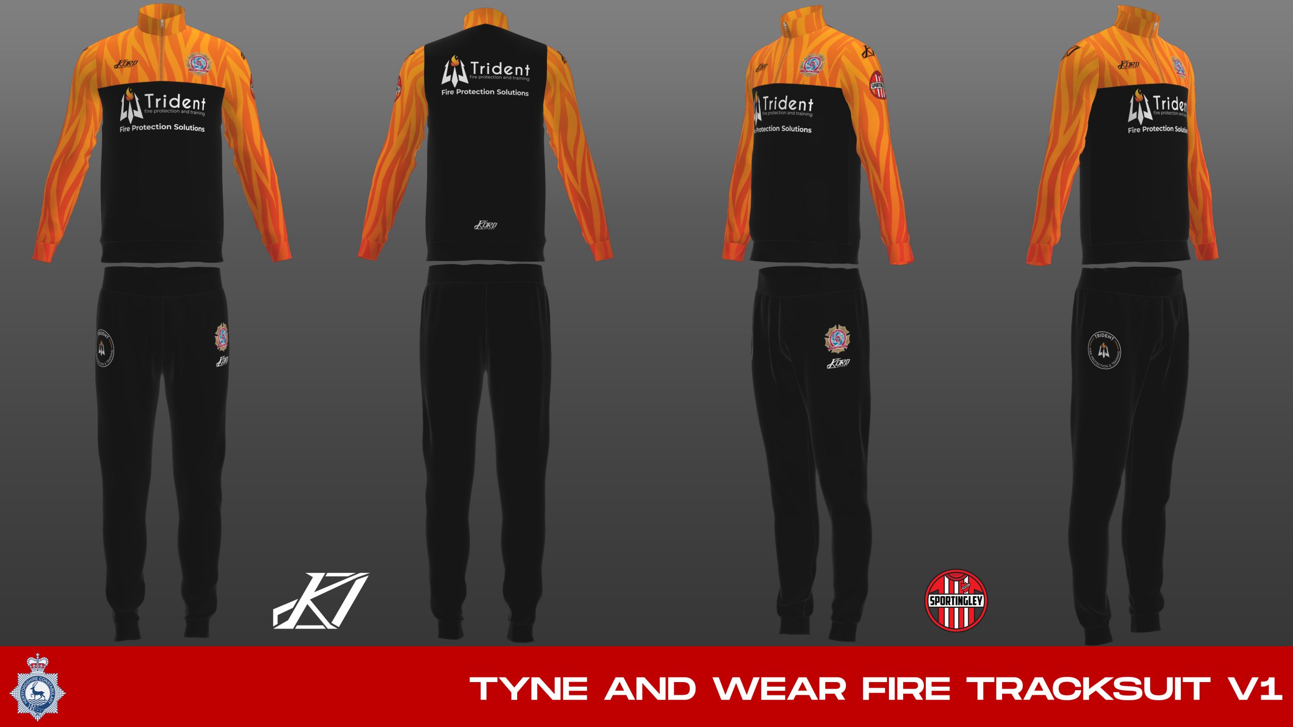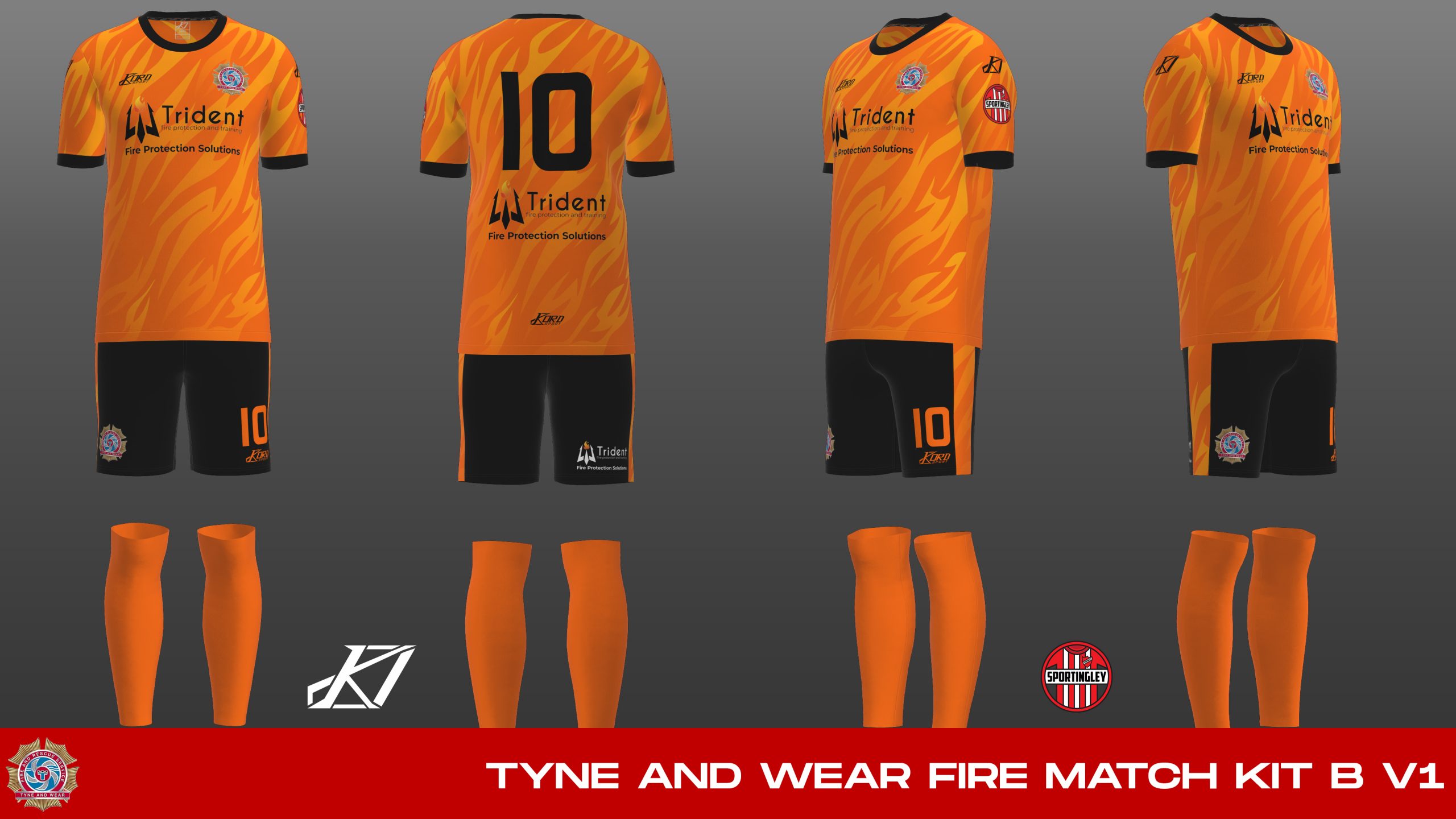 So the team at Sportingley got to work and quickly found them a local sponsor in Trident Fire Protection & Training Ltd who had offices close to the Fire HQ. We have now been able to design a brand new red kit for them, along with an away kit and also full tracksuits!